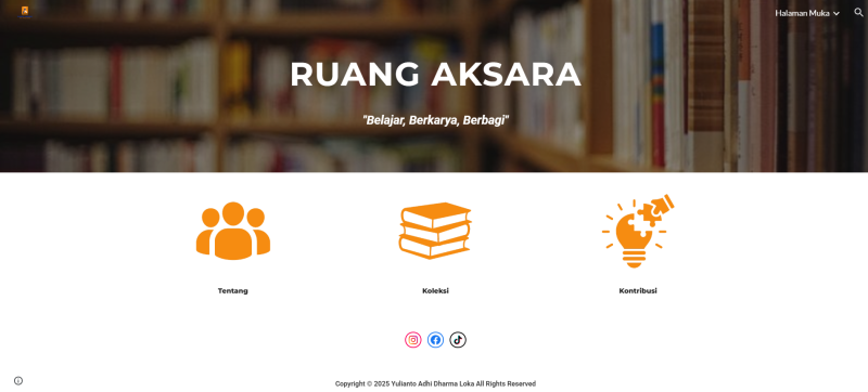 Dengan slogan “Belajar, Berkarya, Berbagi”, Ruang Aksara hadir bukan sekadar sebagai tempat membaca buku digital, tetapi juga sebagai ruang kreatif bagi siswa dan guru untuk mengakses ilmu pengetahuan, menulis karya, dan membagikan hasil ciptaannya.